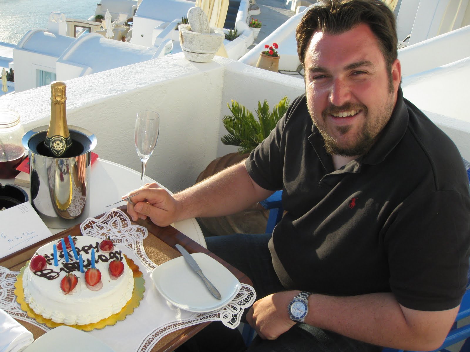 After having seen amazing sites in Athens we were ready to R-E-L-A-X! So, we jumped on a quick flight to the Greek Island of Santorini. I think Tom and I found heaven on earth! We spent 5 days soaking in the sun and relaxing with the gorgeous views of the Agean Sea. Our plane landed in time so that we were able to watch the sunset from our hotel room balcony. Our hotel was the typical picture of Santorini...built into the side of the cliff, a series of little white and blue houses one on top of the other. Our hotel "neighbors" rooms were directly above and below ours. It was so picturesque and absolutely stunning! We were able to watch the sunset over the sea every night....pure bliss. : ) We spent our days taking in all Santorini has to offer.....a sunset sailboat cruise around the island (Tom did great and managed to do much better than on our honeymoon!), a wine tasting tour exploring the various vineyards around the island, and we even rented an ATV to explore the island on our own. Our pictures don't do the beauty of this island justice but will at least give you a general idea.
