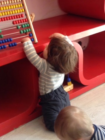 Our little baby is changing into a little toddler before our eyes...we love his giggles and need to explore! He loves to point at things and we love to tell him all about whatever it is he is pointing out!